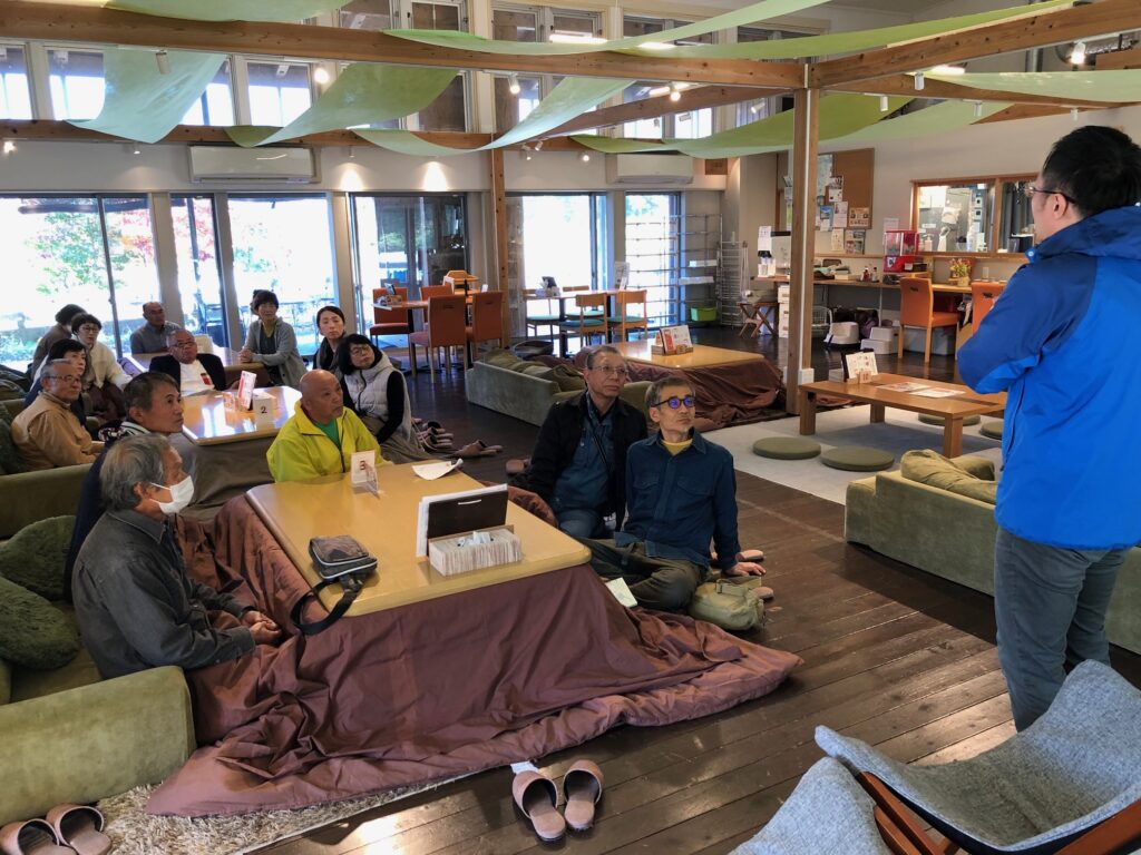 11月16日、池田町の地域産業等支援施設わくラボへ。waccaカフェで代表の秋元さんから、地域おこし協力隊就任のきっかけや、移住、起業、携わった事業などのお話を伺いました。こたつに入って、美味しいランチもいただいて、とても充実した楽しい研修になりました。